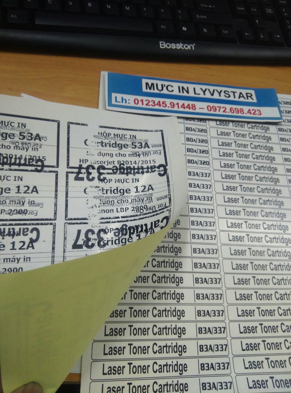 Sau khi sử dụng chai mực nạp in trên giấy decal của cty mực in Lyvystar thì minh in ra rất đậm,đẹp.Cho mã vạch không tróc chữ..Và sau đây là những bảng in mà Lyvystar sẽ cung cấp cho bạn và doanh nghiệp của bạn.Nếu bạn ở các quận như quận 1,quận 3,quận 7,quận 8 thậm chí quận 9 hay thủ đức bình thạnh.Chúng tôi vẫn giao mực nạp hoặc hộp mực 12A dành cho HP 1020,1010,1018.còn dòng canon sử dụng cho máy in canon 2900 thì dùng mã mực là 103/303/703 .Vì hai mã này sử dụng chung 1 hộp mực nha mọi người..