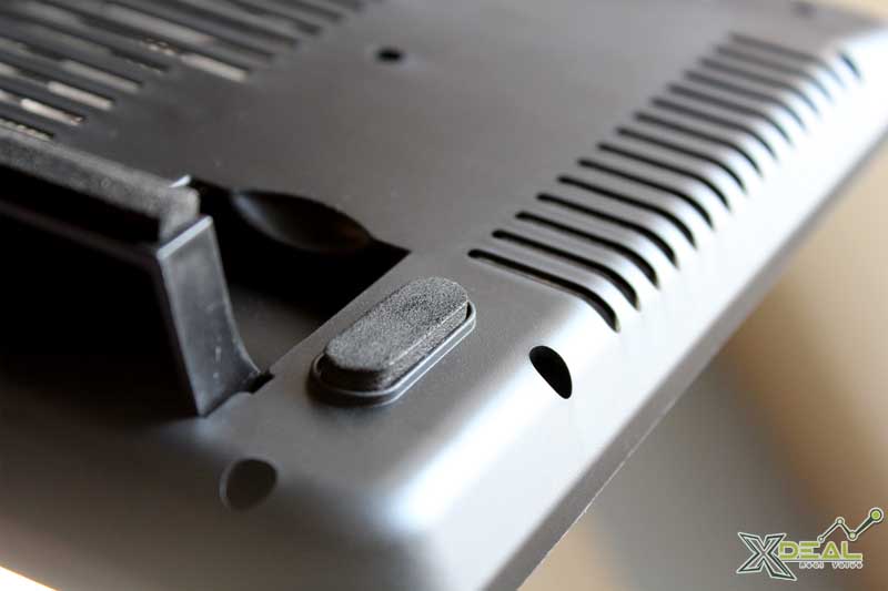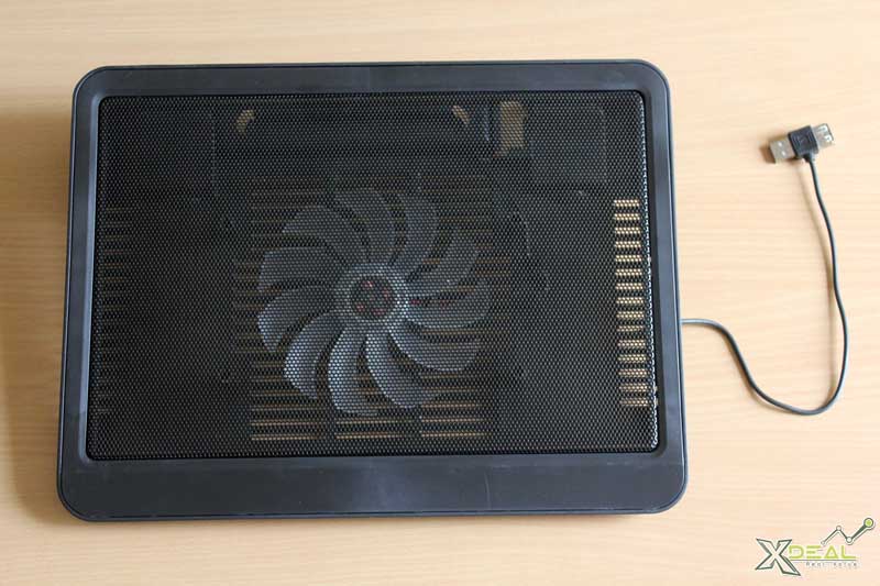 Bề mặt làm bằng chất liệu nhôm không gỉ với hàng vạn lỗ thông khí li ti khép kín. Bên ngoài phủ lớp nhựa bóng loáng. Phía dưới có 2 gờ nổi giúp laptop không bị trợt do độ nghiêng của fan tản nhiệt với mặt bàn.